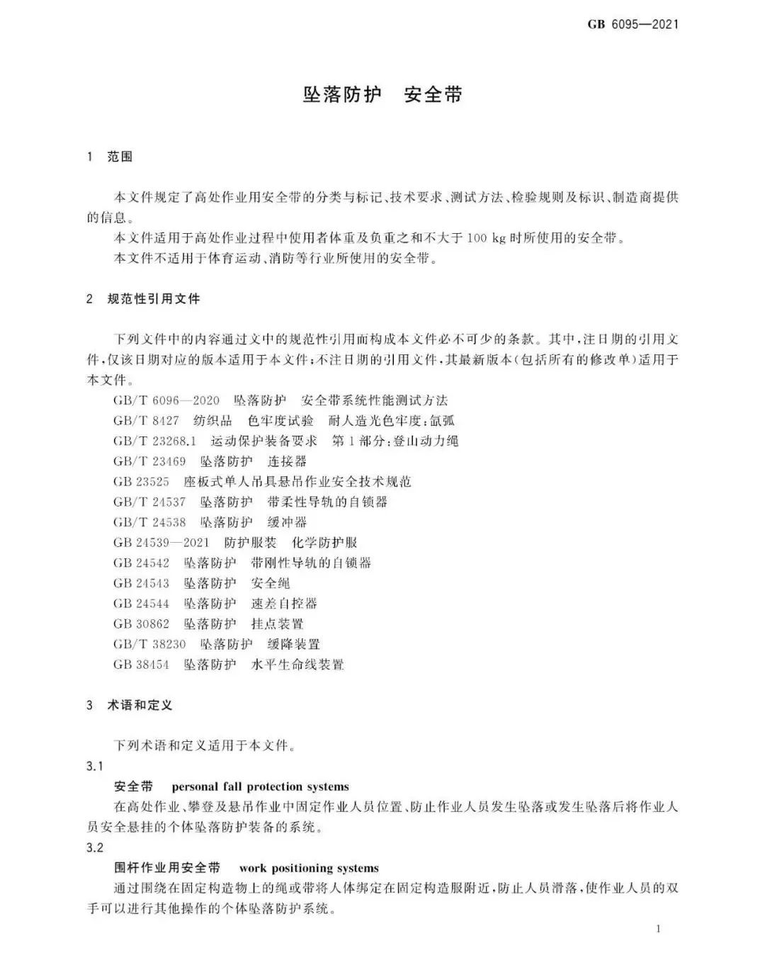 GB 6095-2021《墜落防護 安全帶》,9月1日實施!