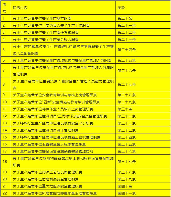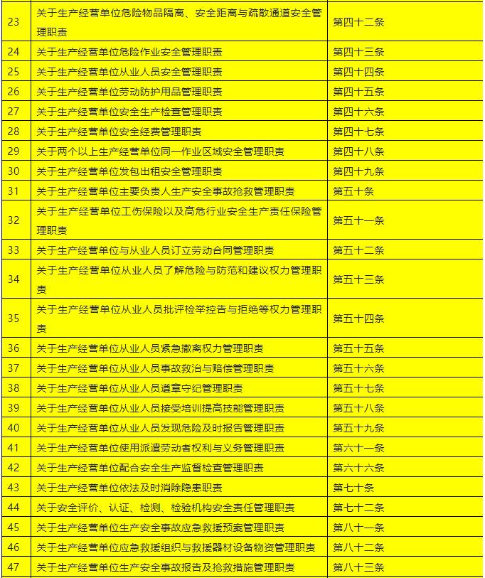 生產(chǎn)經(jīng)營(yíng)單位安全生產(chǎn)職責(zé)一覽表(簡(jiǎn)稱“50條職責(zé)條款”)