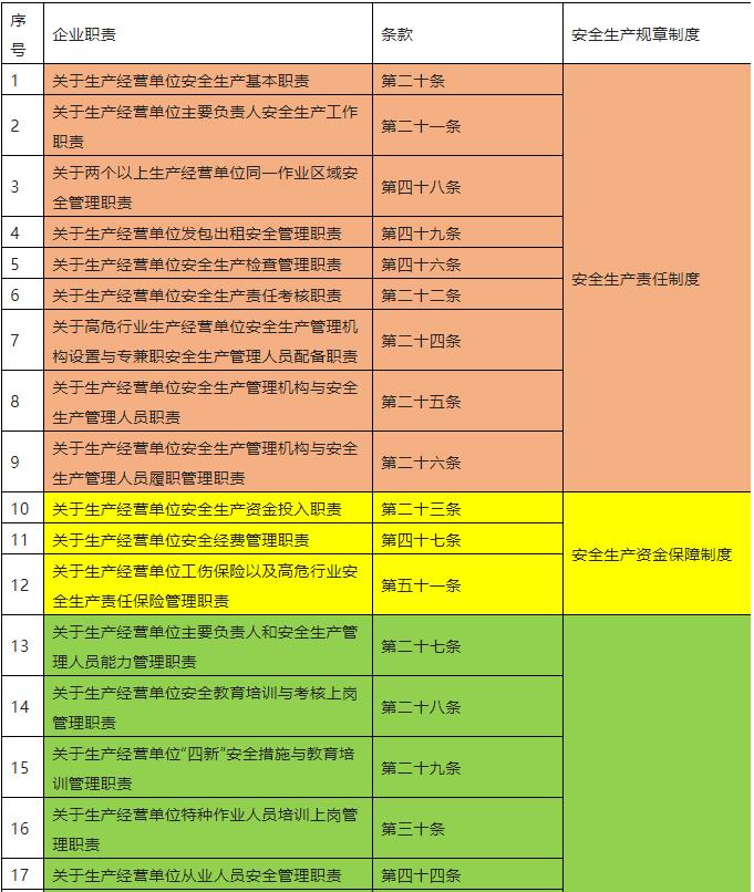 企業(yè)主要負(fù)責(zé)人法定七項(xiàng)安全生產(chǎn)職責(zé)與企業(yè)安全生產(chǎn)“50條職責(zé)”相對(duì)應(yīng)的條款 要做到企業(yè)主要負(fù)責(zé)人法定七項(xiàng)安全生產(chǎn)職責(zé)分解落實(shí)不漏項(xiàng),必須要找出企業(yè)主要負(fù)責(zé)人法定七項(xiàng)安全生產(chǎn)職責(zé)與企業(yè)安全生產(chǎn)“50條職責(zé)”相對(duì)應(yīng)的條款。