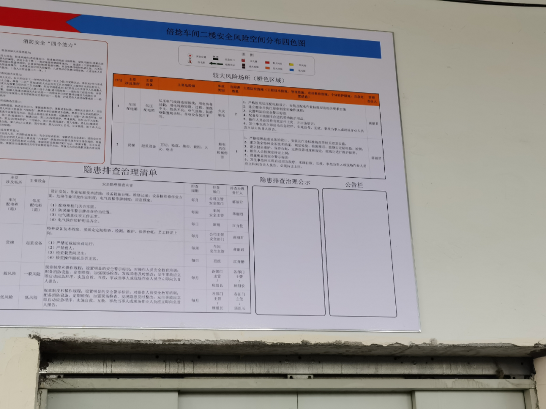 △企業一樓紡織車間風險管控四色圖上關于隱患排查公告欄無通報內容