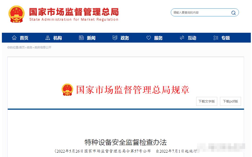 特種設備安全監督檢查辦法 (2022年5月26日國家市場監督管理總局令第57號公布 自2022年7月1日起施行)